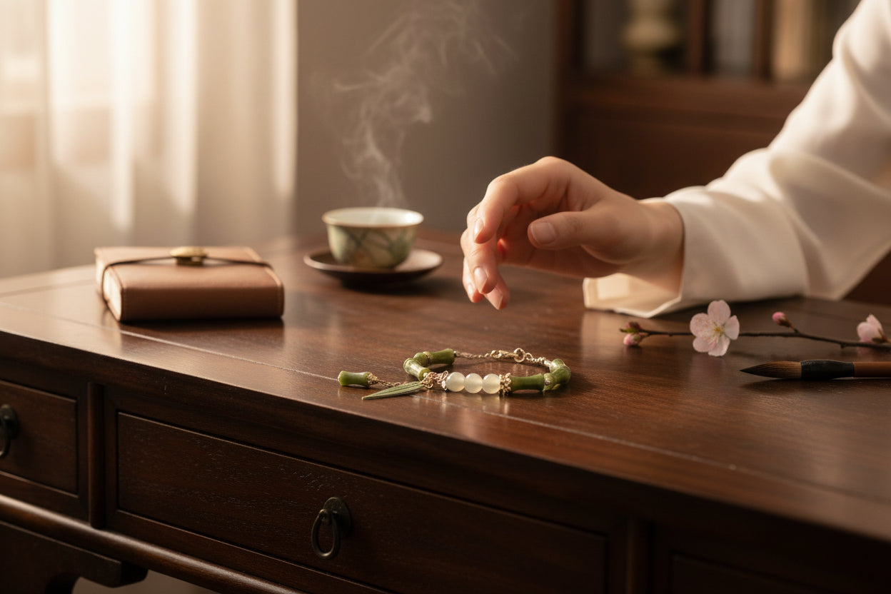 Root Chakra Grounding Bracelet · Hetian Jade & Bamboo