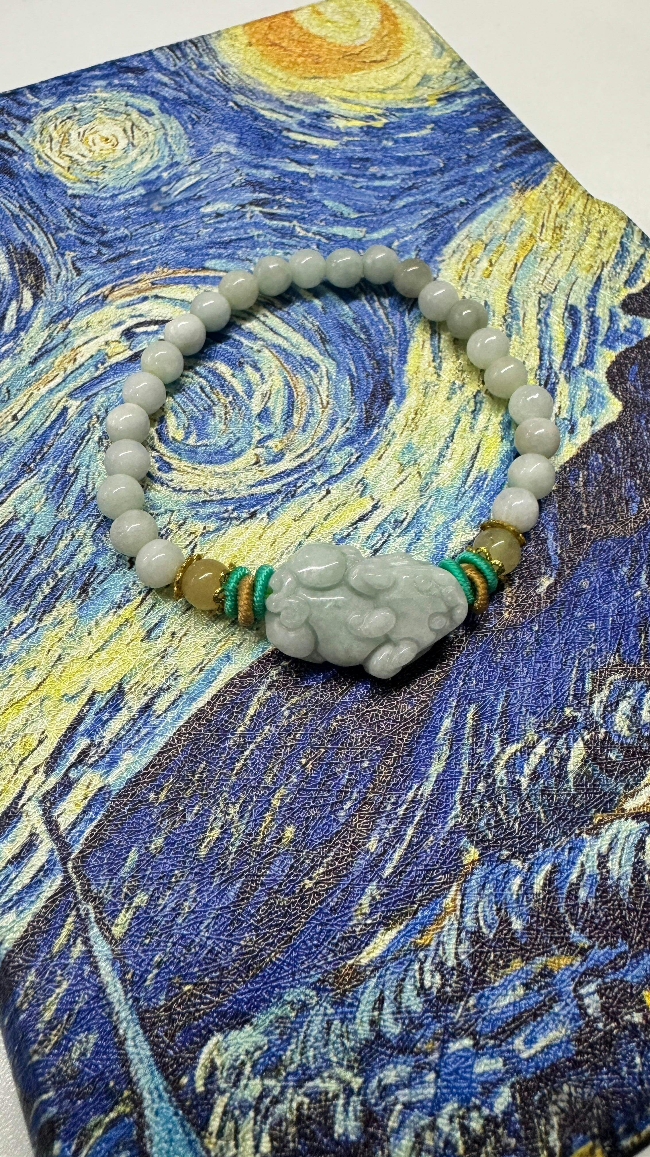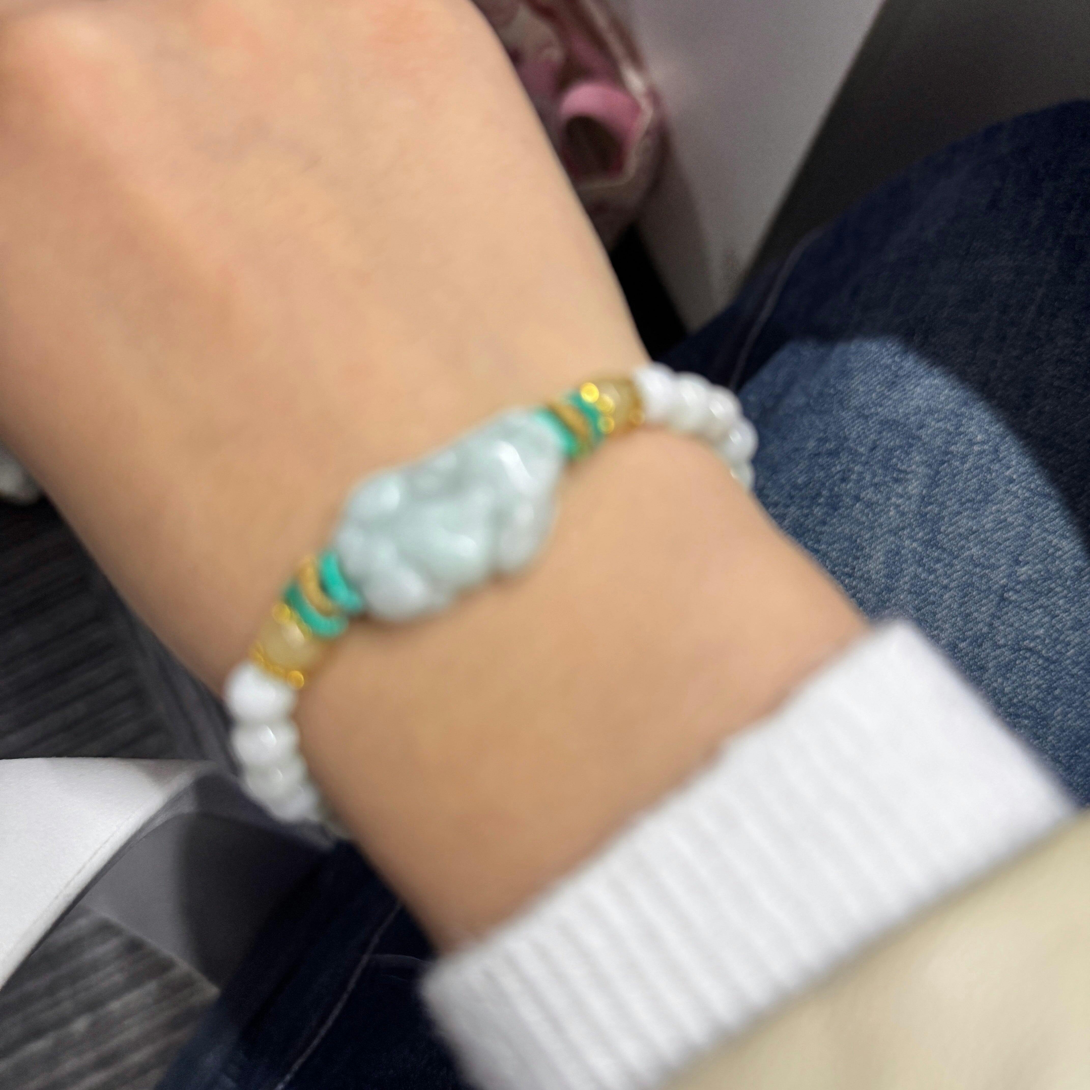 Invite abundance and protection with the Jade Pixiu Bead Bracelet.