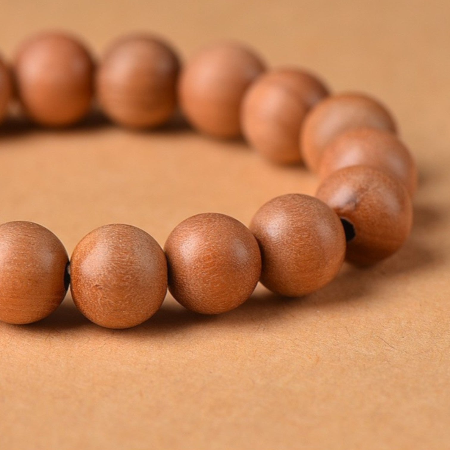 Each bead is subtly unique, bearing the natural grain and scent of real peach wood. Lightweight and soft against the skin, it offers a comforting, unobtrusive presence throughout the day.