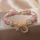 Strawberry Quartz Moonstone Star Moon Pendant Love Bracelet