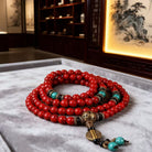 Tibetan Red Turquoise Buddhist 108 Mala Beads Protection Bracelet