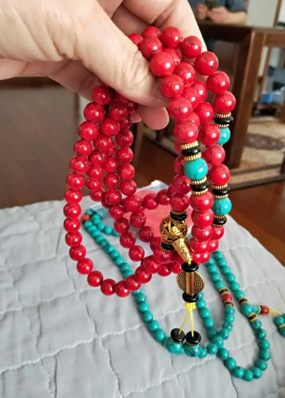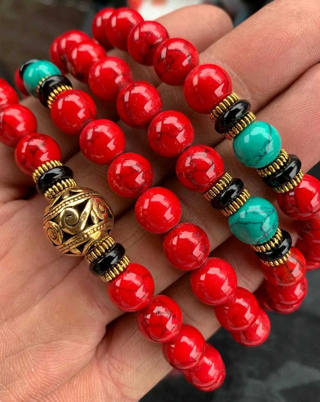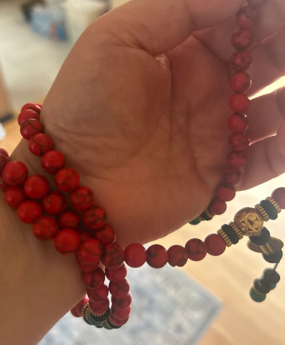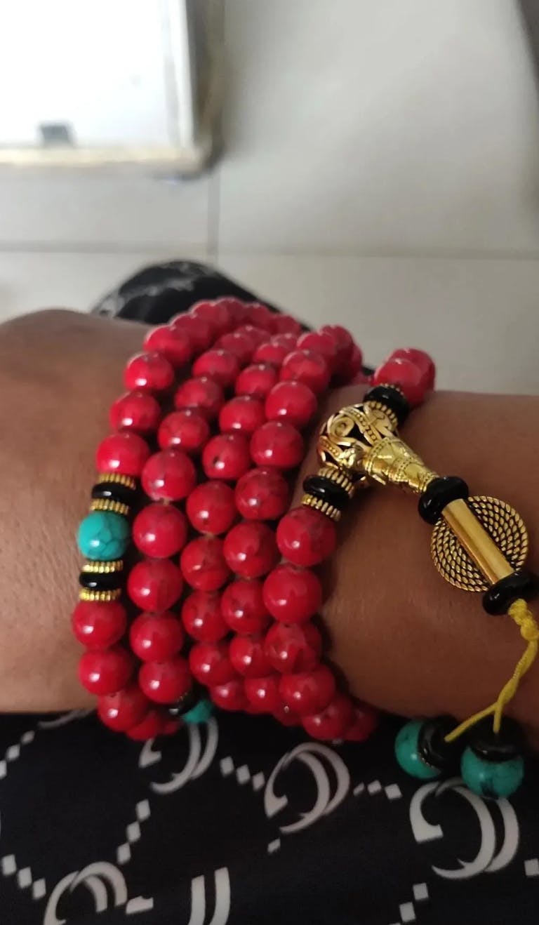 Each bead carries deep spiritual meaning — symbolizing wisdom, strength, and enlightenment. In Buddhist culture, prayer beads are used to cultivate mindfulness and positive intention. The red turquoise amplifies vitality, courage, and emotional balance, creating a harmonious flow of energy that shields the wearer from harm while promoting inner peace and focus.