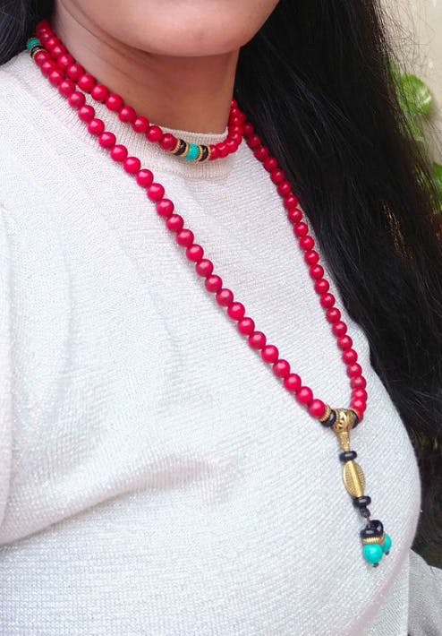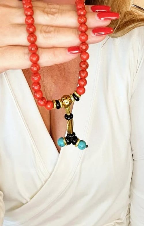 In Tibetan belief, red turquoise is cherished as a stone of life energy and protection. It is said to strengthen the spirit, enhance courage, and protect against negative influences. Used in Buddhist malas and sacred jewelry, it serves as a reminder to stay grounded, mindful, and connected to one’s inner strength.