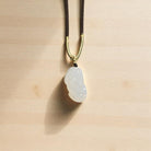 The pendant is carved from natural white chalcedony, a stone believed to promote inner peace and gentle clarity. Its subtle glow and translucent beauty make it both a spiritual amulet and a timeless statement piece.
