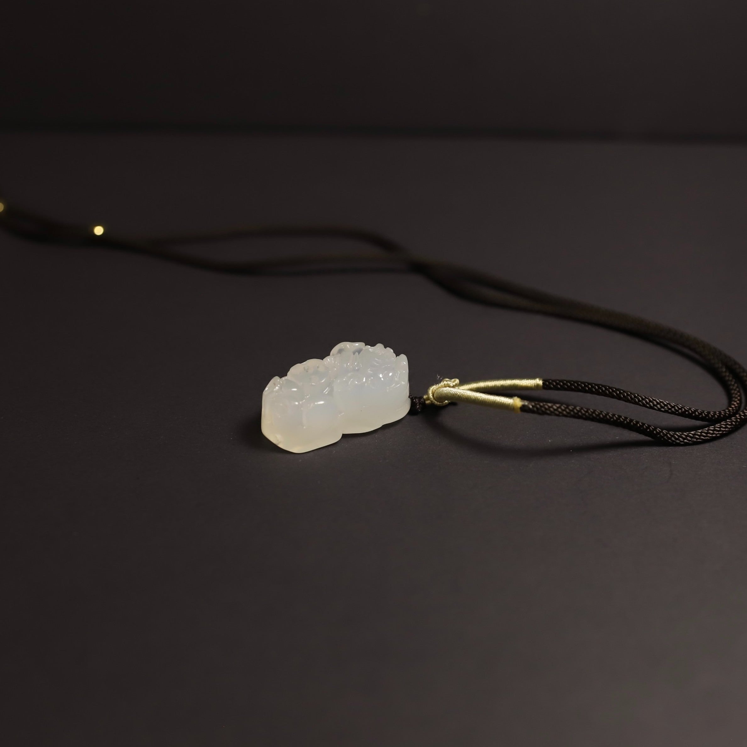 This elegant White Chalcedony Pixiu Pendant Necklace brings together calming energy and protective symbolism.
