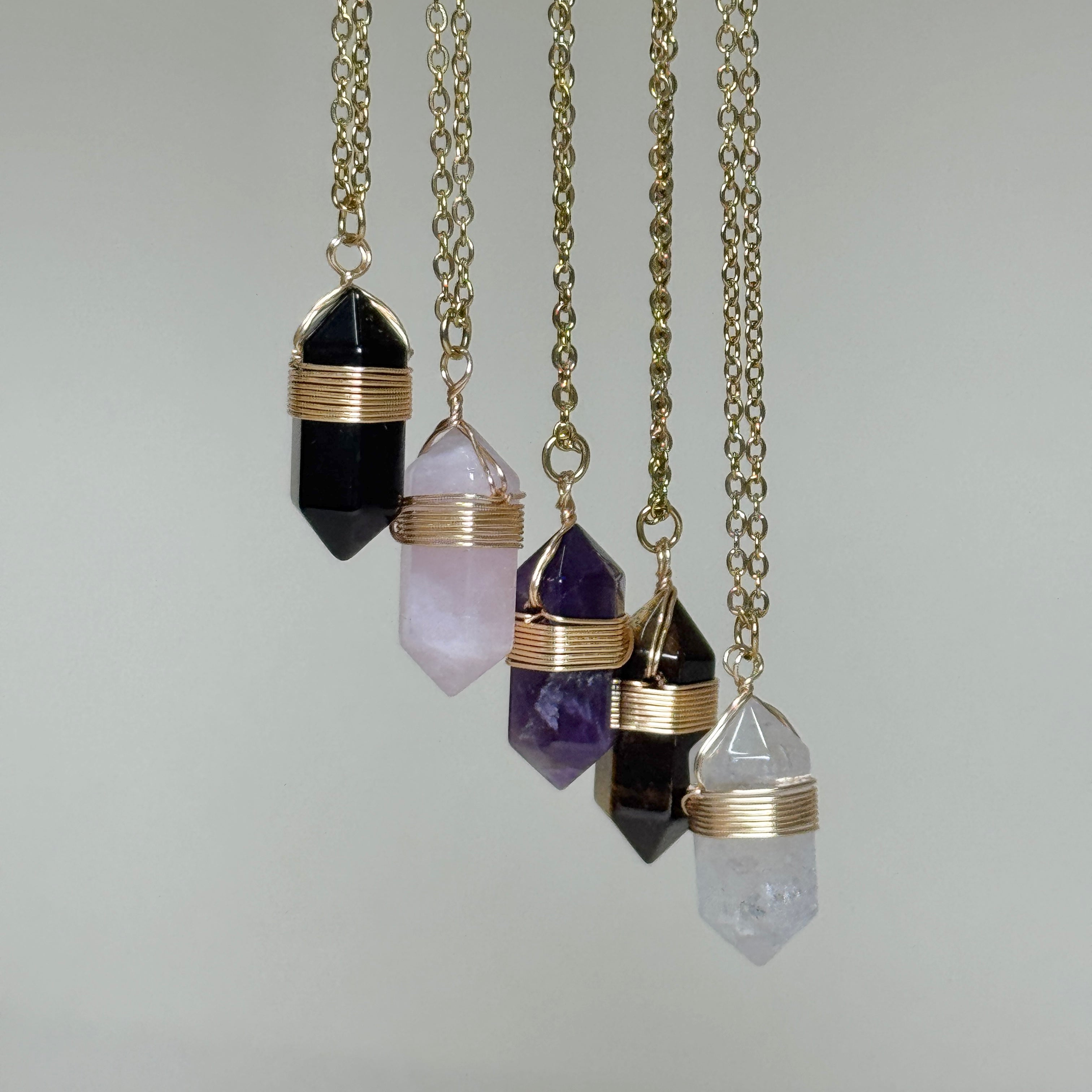 Chakra & Aura Natural Crystal Hexagon Wire-Wrapped Necklace