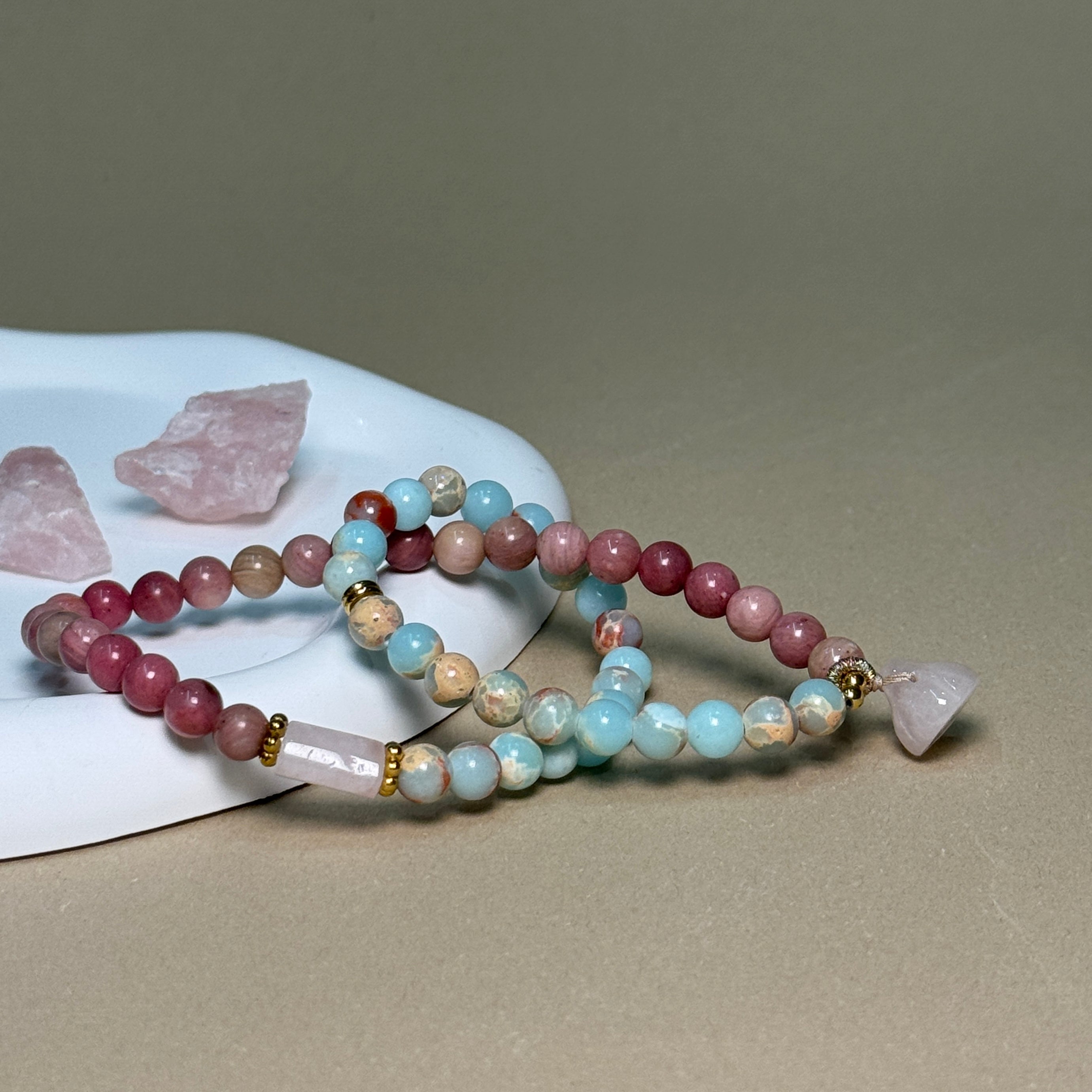 Chakra & Aura Double Wrap Natural Rhodonite Shoushan Stone Bracelet