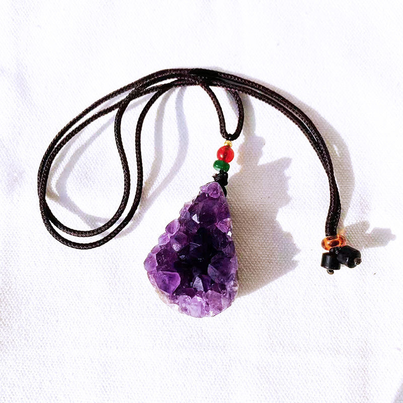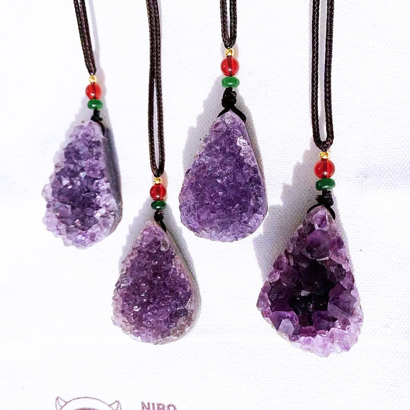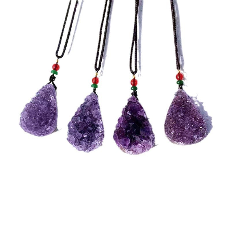 Chakra & Aura Natural Amethyst Druzy Teardrop Pendant Necklace