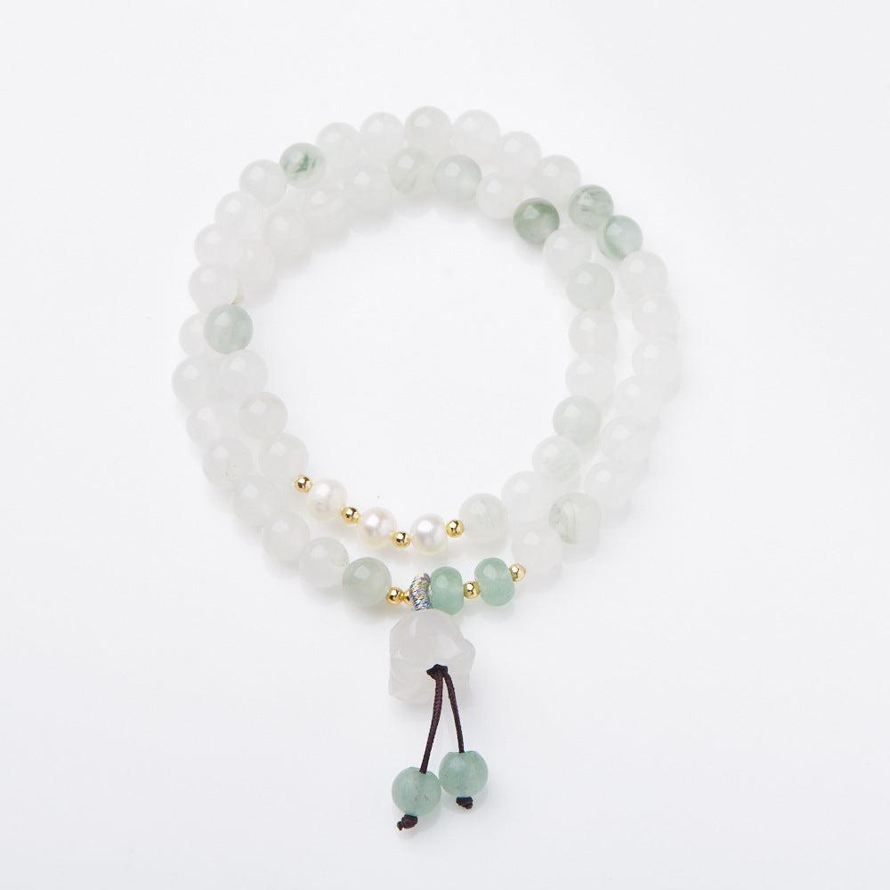 Chakra & Aura White Jade Blossom Charm Wrap Bracelet