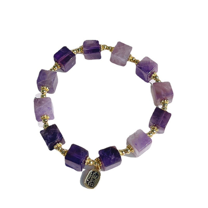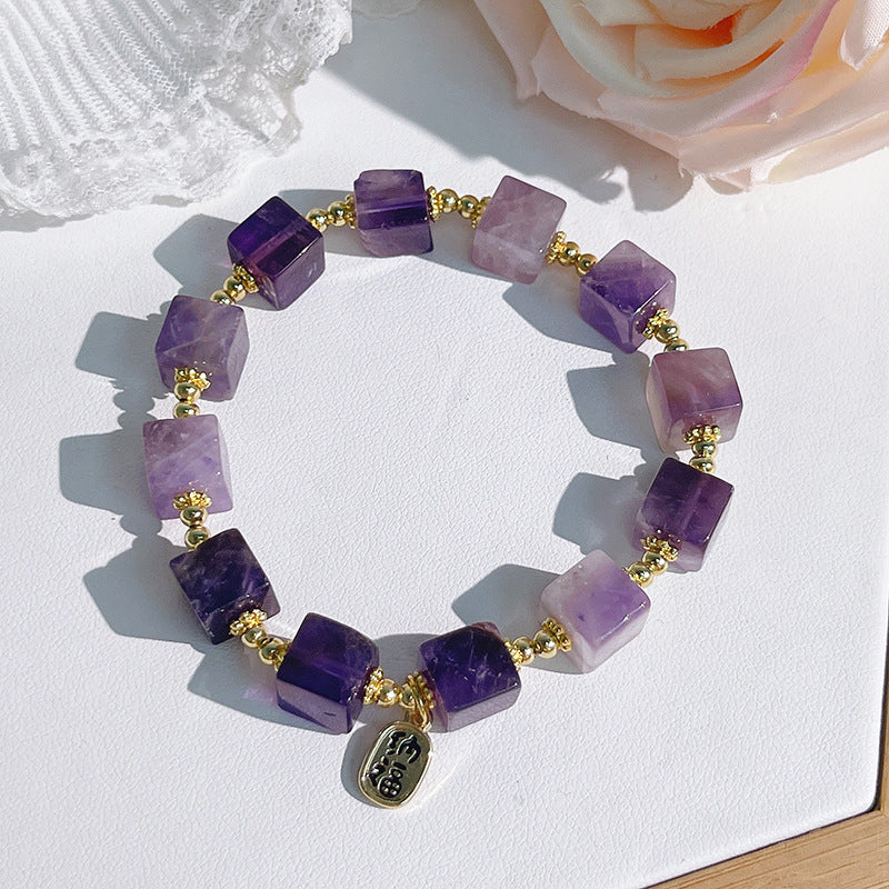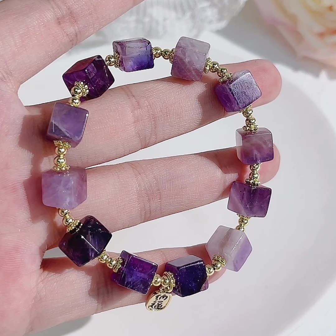 The unique square-cut design adds a modern touch, representing stability, grounding, and balance in all aspects of life. Each amethyst bead not only radiates natural beauty but also serves as a reminder to remain centered and mindful through life’s challenges.