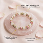 It’s common practice to wear rose quartz as a gentle reminder of kindness. When you put on this bracelet, pause to set your intention—perhaps by touching the heart bead or simply taking a mindful breath: