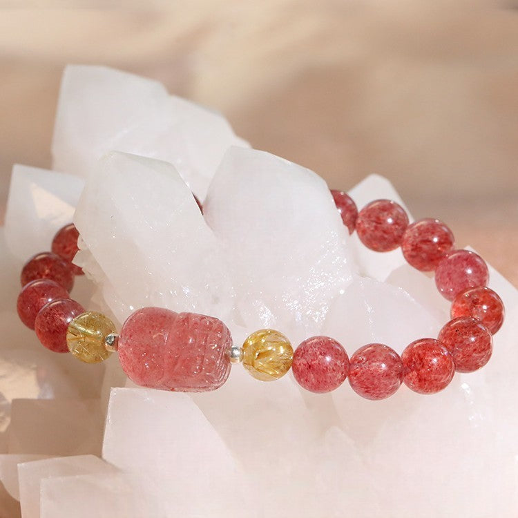 With its romantic pink tones and the auspicious presence of the Pixiu, the Strawberry Quartz Pixiu Bracelet complements any style while surrounding you with the energies of affection and prosperity.