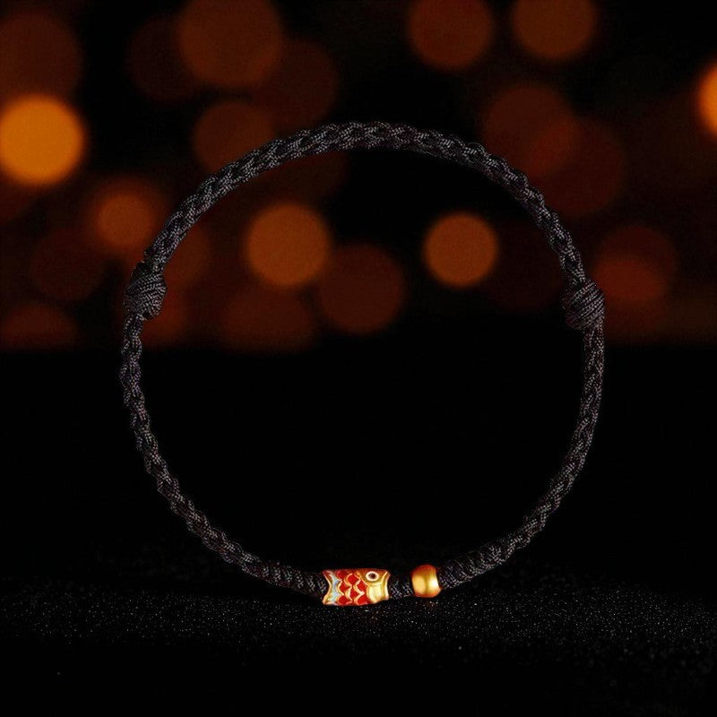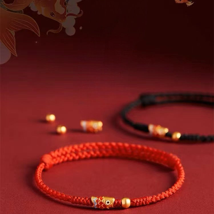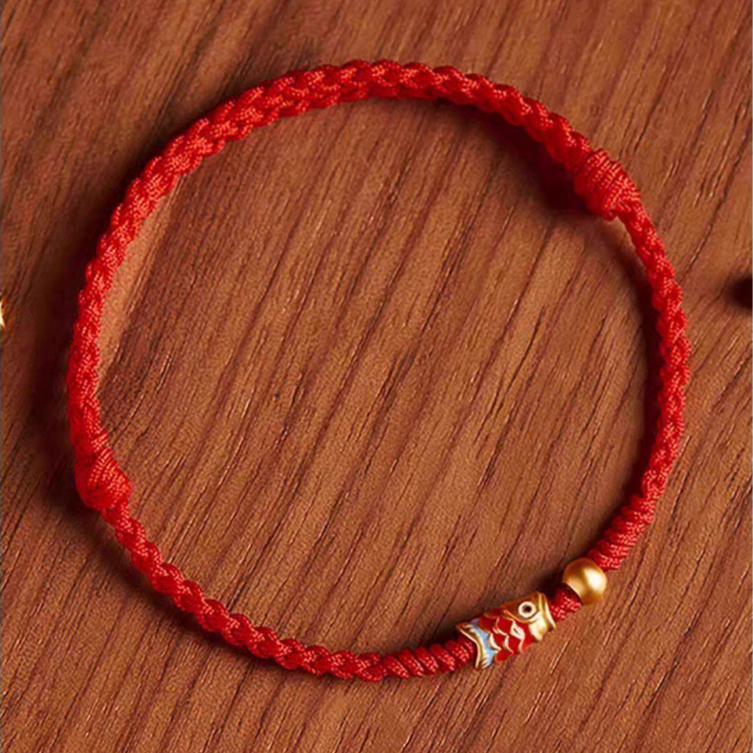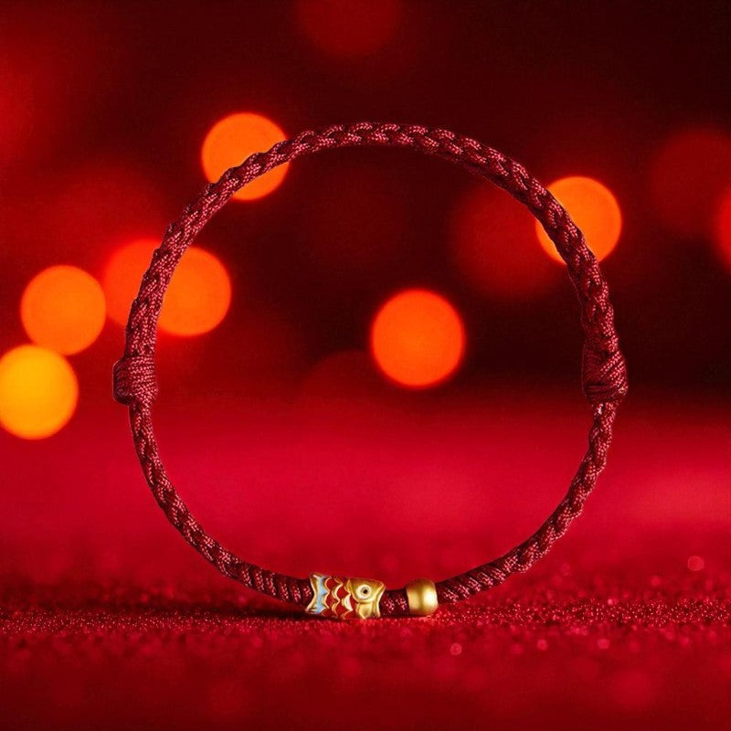 Chakra & Aura Koi Fish Wealth Braided Red Rope Luck Bracelet