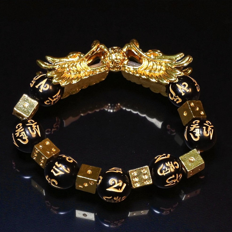 Chakra & Aura Double Dragon Six-Character Mantra Dice Wealth Bracelet