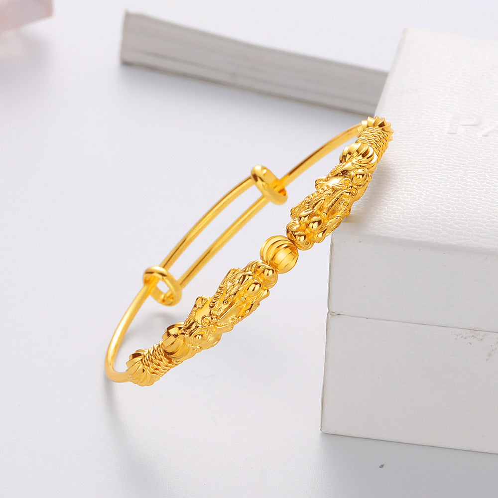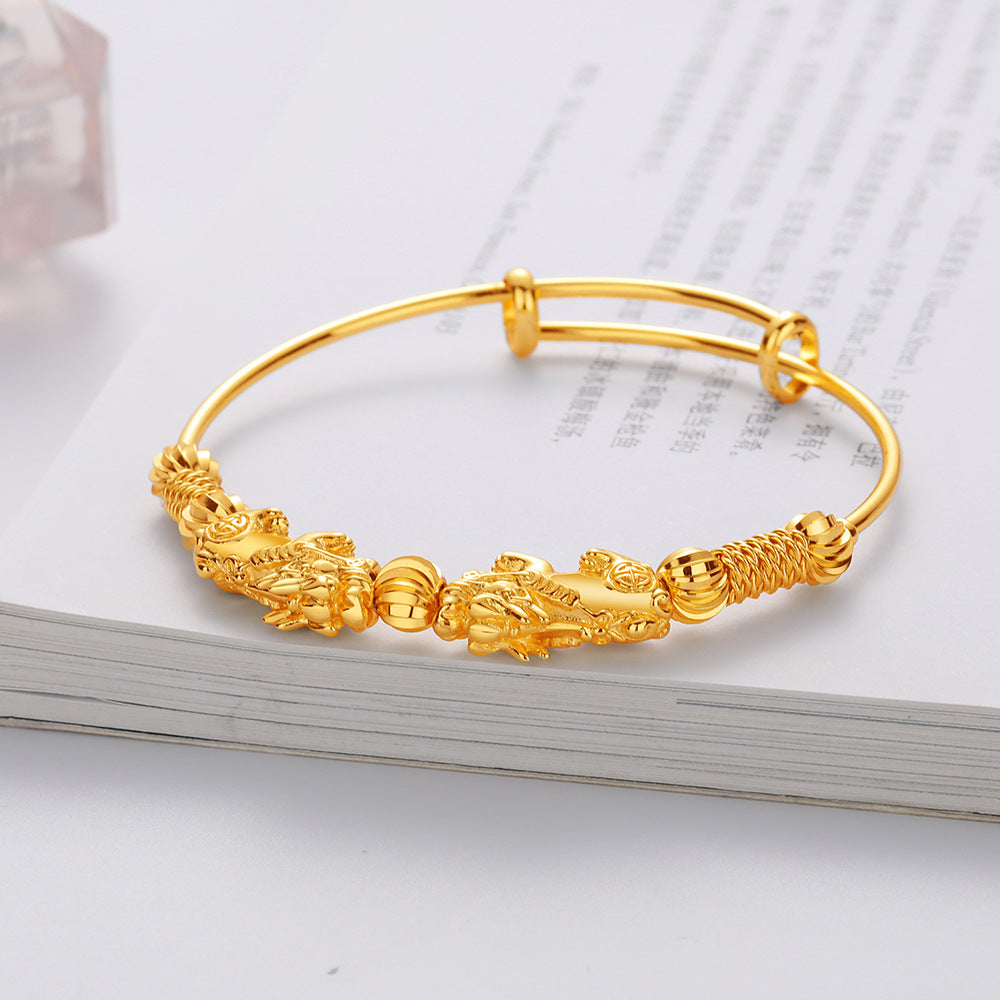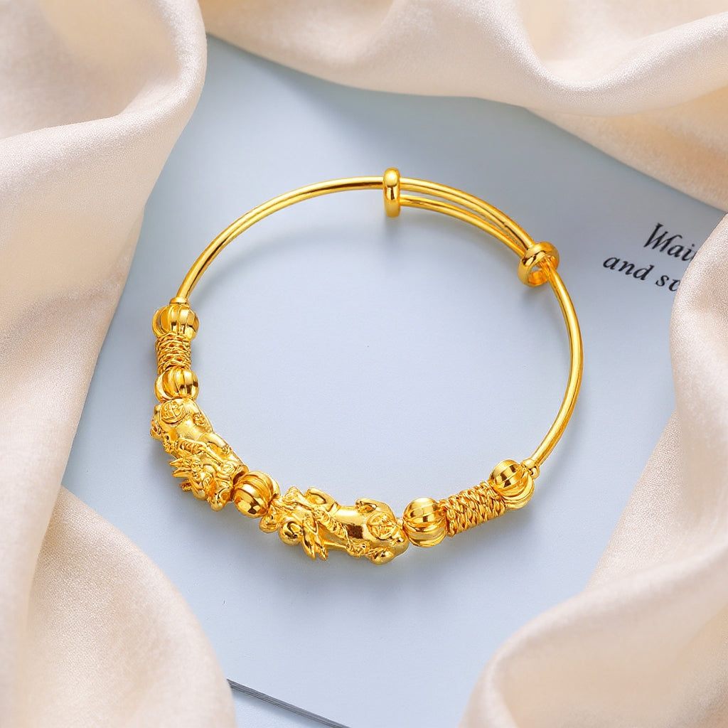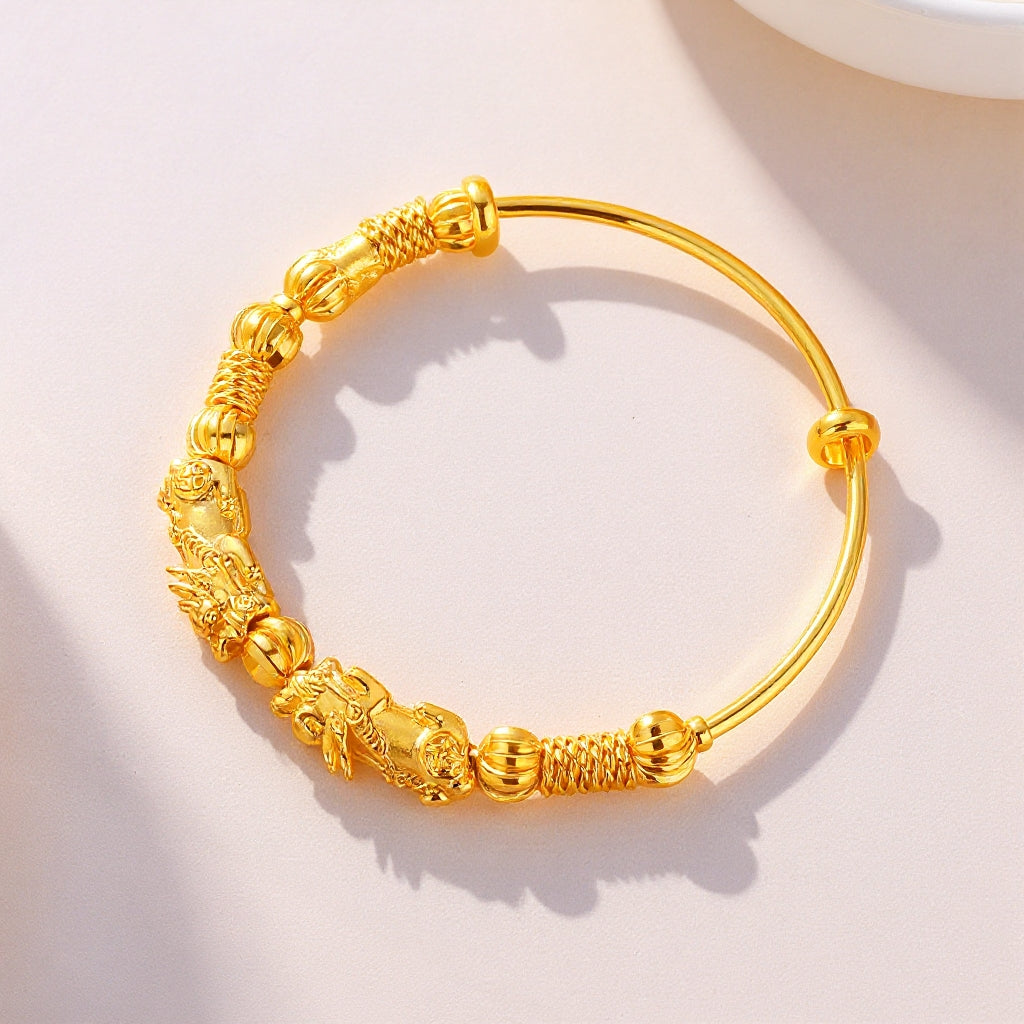Step into abundance with the radiant charm of the Golden Pixiu Bangle — a timeless talisman believed to attract wealth, safeguard blessings, and energize your personal power.
