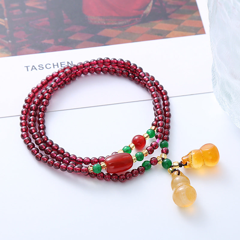 Channel vitality and protection with the Garnet Double Gourd Pendant Bracelet Necklace.