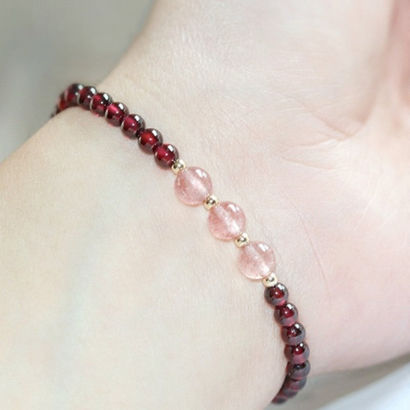 Garnet Three Strawberry Quartz Love Bracelet