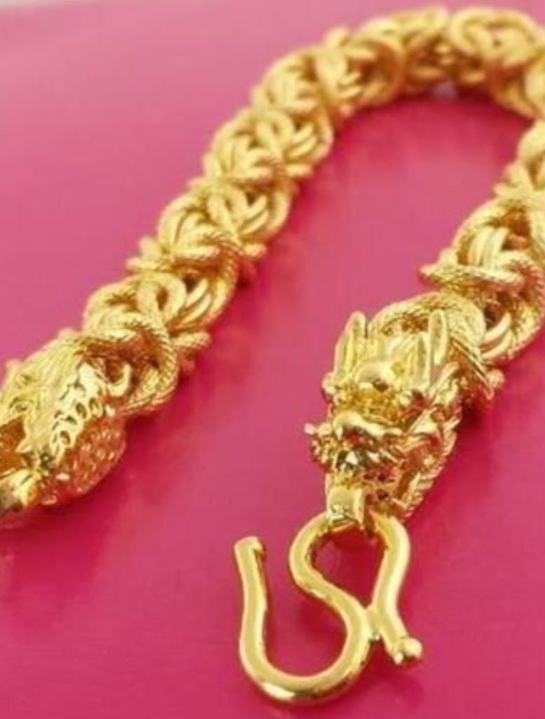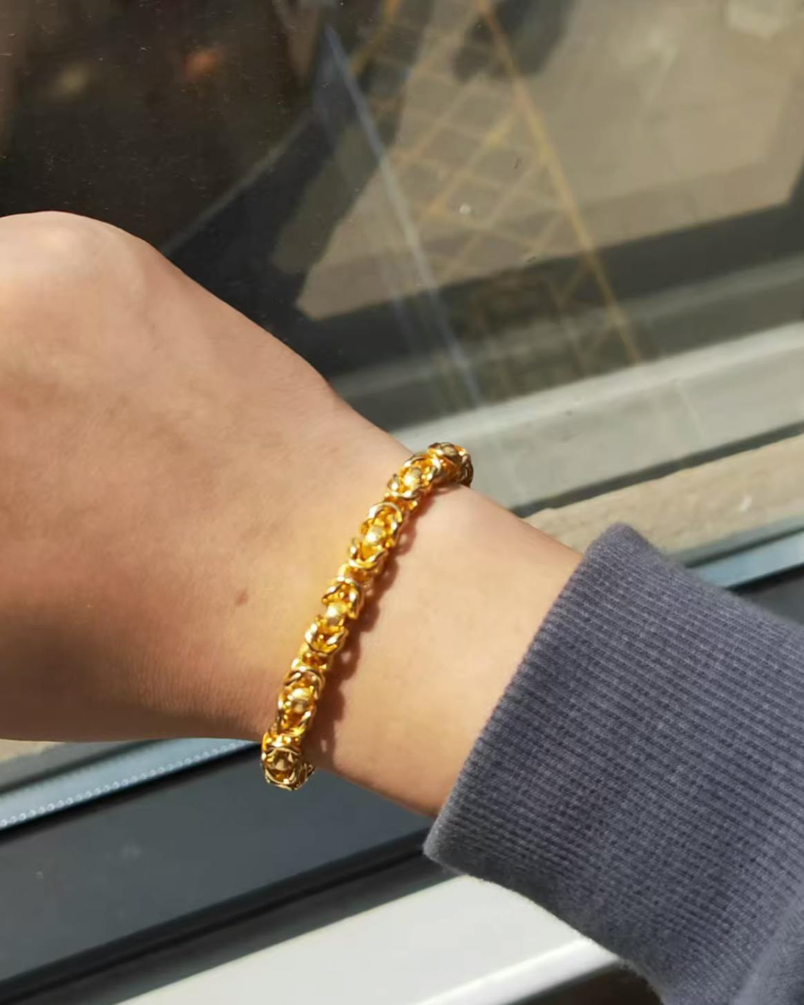 - Gold Finish. The warm golden tone enhances the bracelet’s bold presence, traditionally seen as a symbol of fortune and authority.