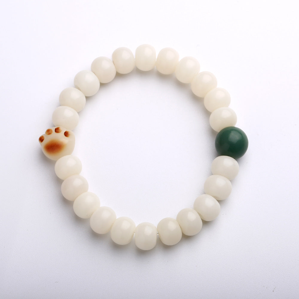 For those who seek daily calm, heartfelt protection, and a touch of playful charm, the Lucky Paw Bodhi Bead Protection Bracelet blends traditional intention with modern warmth. The creamy white bodhi beads symbolize mindfulness and clarity, while the adorable paw charm adds a hint of whimsy and connection to compassion. A single deep green bead acts as a grounding focal point—representing renewal and emotional resilience.