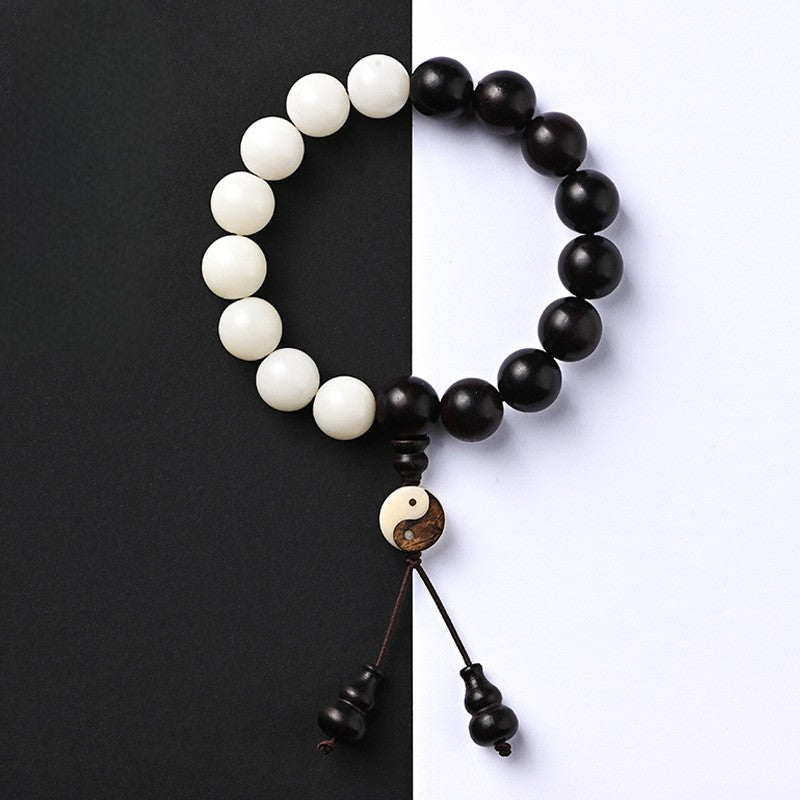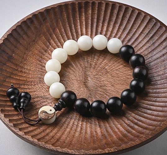 White Bodhi Ebony Yin-Yang Protection Bracelet