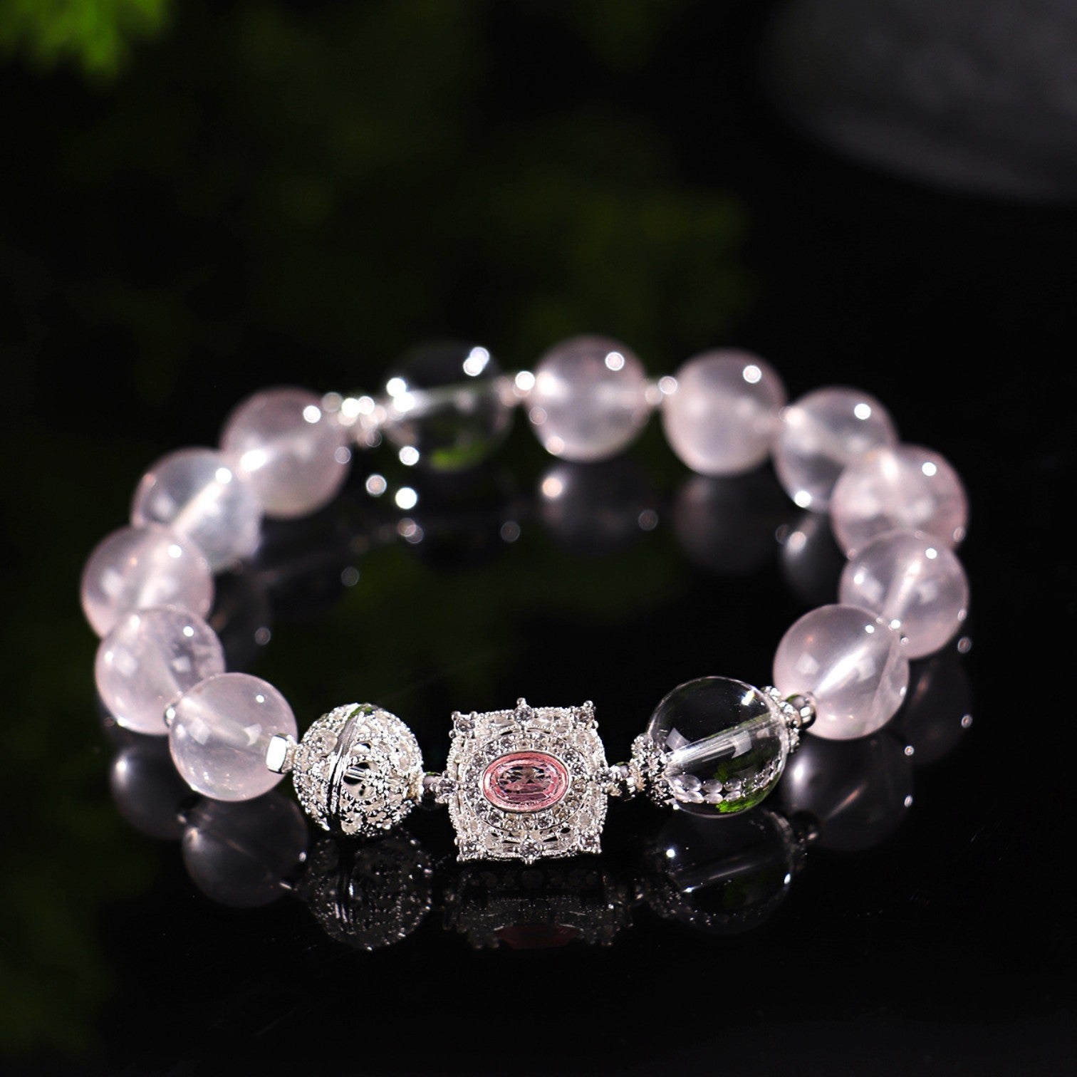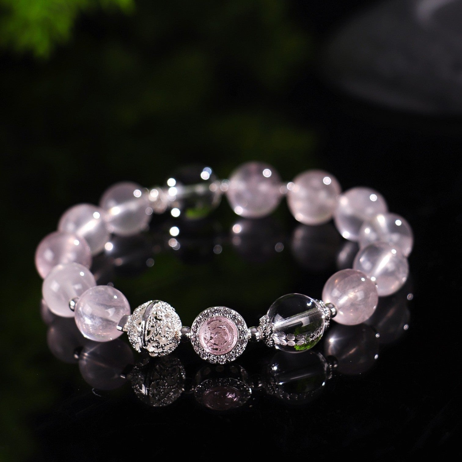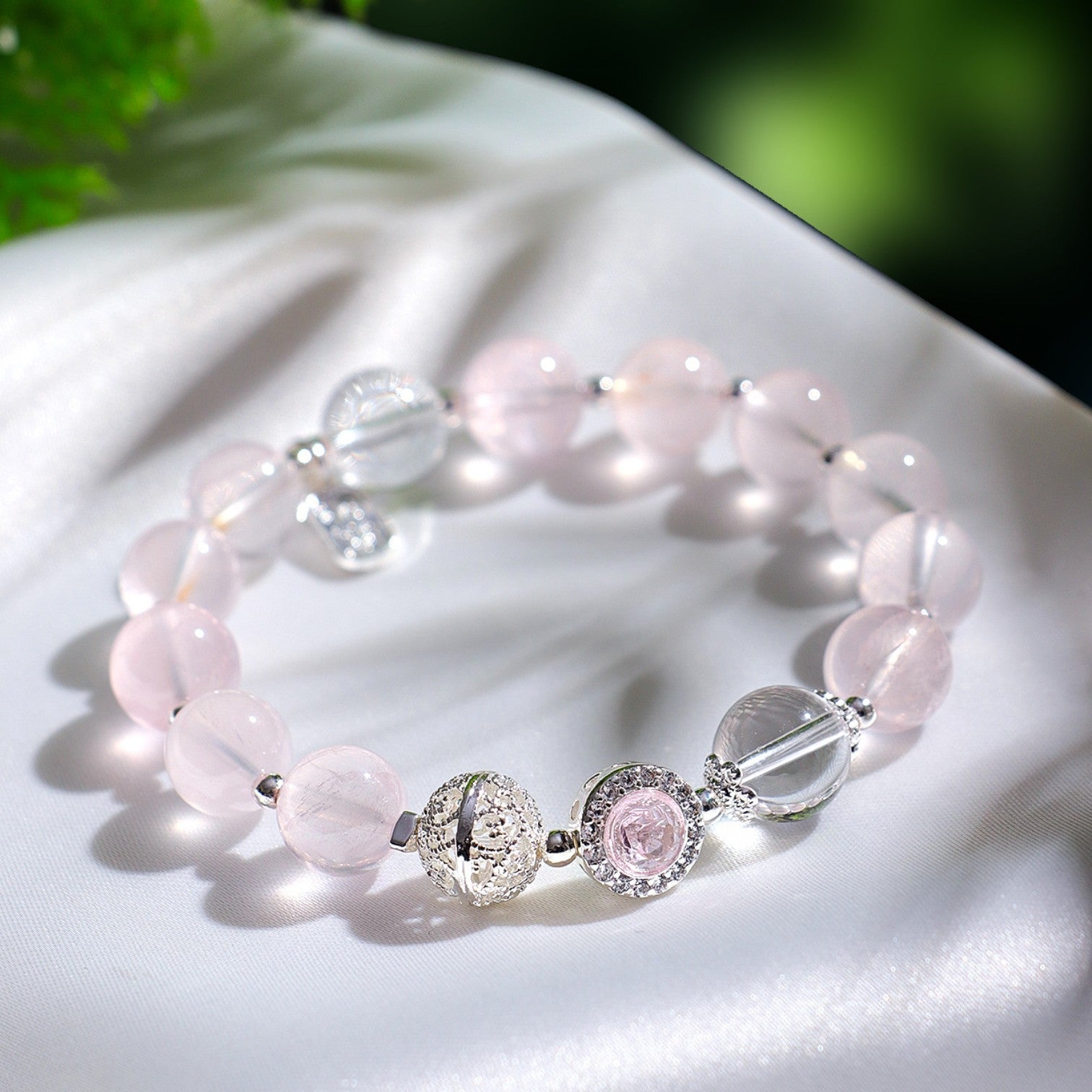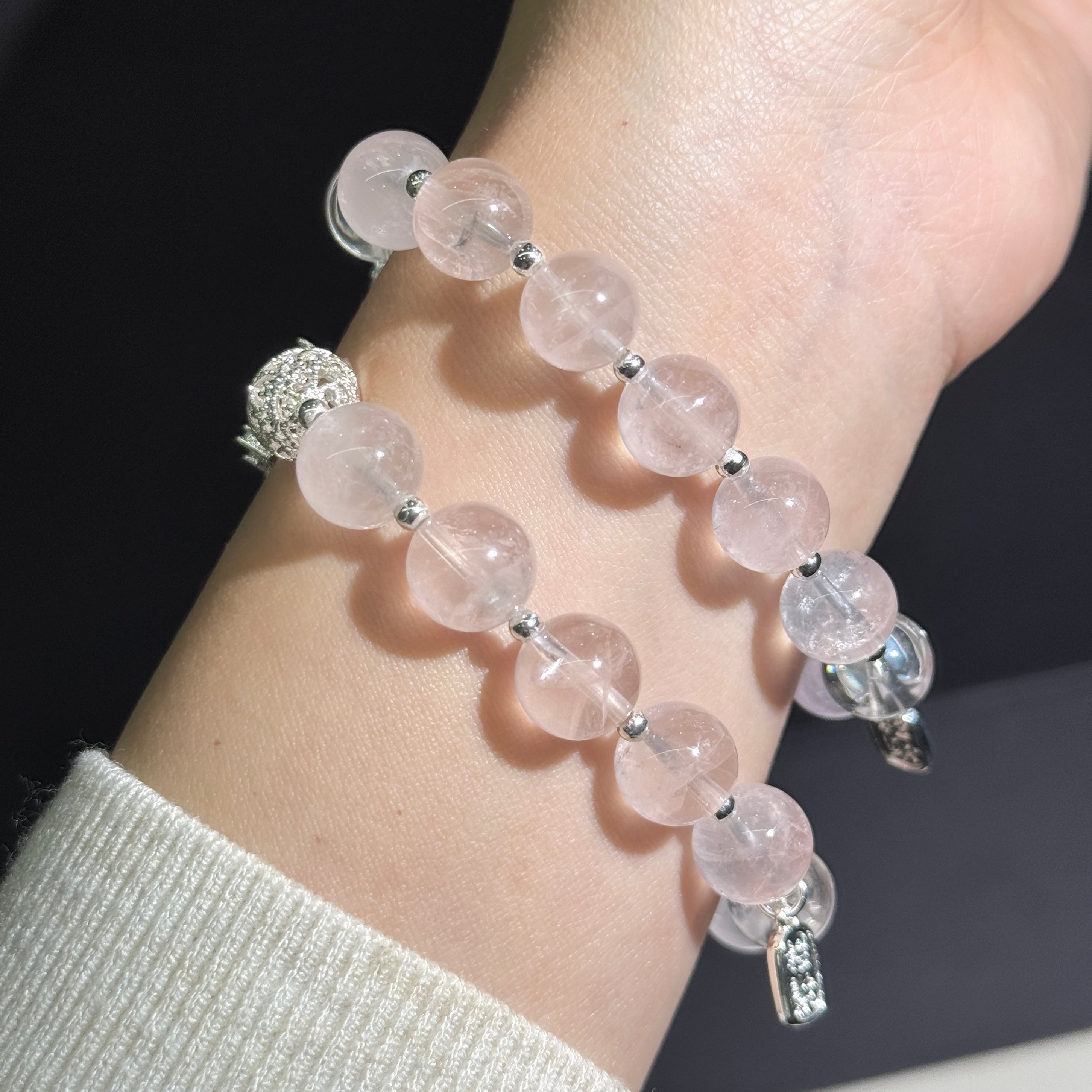 The Rose Quartz Charm Bracelet is a delicate and enchanting accessory crafted from natural rose quartz beads, enhanced with detailed silver-toned charms and accents. Known as the stone of love, rose quartz carries a gentle pink glow that symbolizes harmony, affection, and compassion. With its elegant design, this bracelet is perfect for both daily wear and special occasions, adding a touch of romance and timeless beauty to your style.