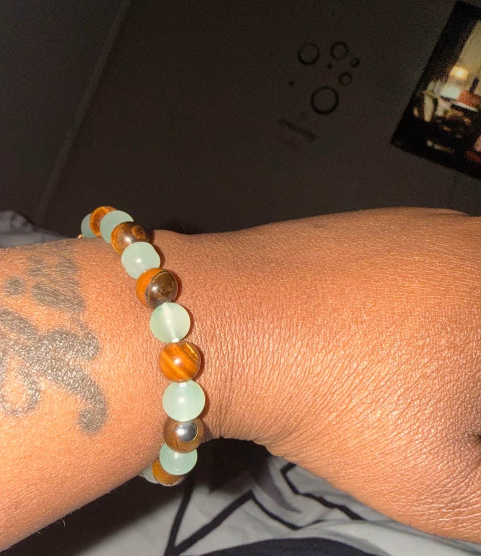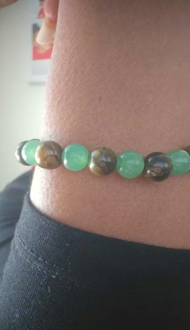 Green jade has long been treasured as a symbol of prosperity, harmony, and good fortune, while Tiger’s Eye is known for enhancing courage, focus, and inner strength. Together, these stones create a meaningful bracelet that supports wise decisions, attracts wealth opportunities, and promotes balance in everyday life. 🔮