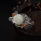 Chakra & Aura Hetian Jade Rose Silver Open Balance Ring