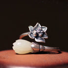 Wear the White Jade Magnolia Lotus Open Balance Ring as a daily reminder of purity, balance, and resilience. Let it guide you to embrace harmony, rise with grace, and walk your journey with clarity.