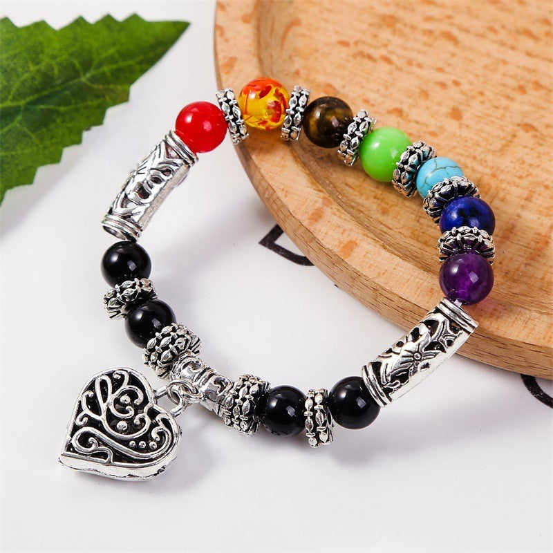 7 Chakra Heart-Shaped Pendant Balance Bracelet