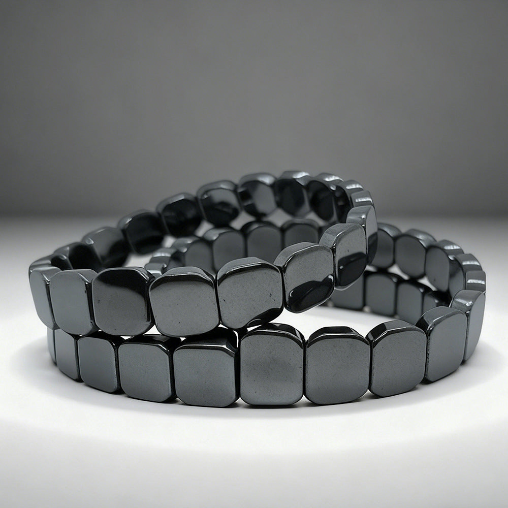 Hematite is known as a grounding stone, often associated with absorbing negative energy and promoting emotional clarity. Its steady, calming presence helps reduce stress, enhance focus, and reinforce a sense of security and confidence. The natural metallic sheen of hematite adds a refined, minimalist aesthetic that pairs effortlessly with both casual and formal looks.