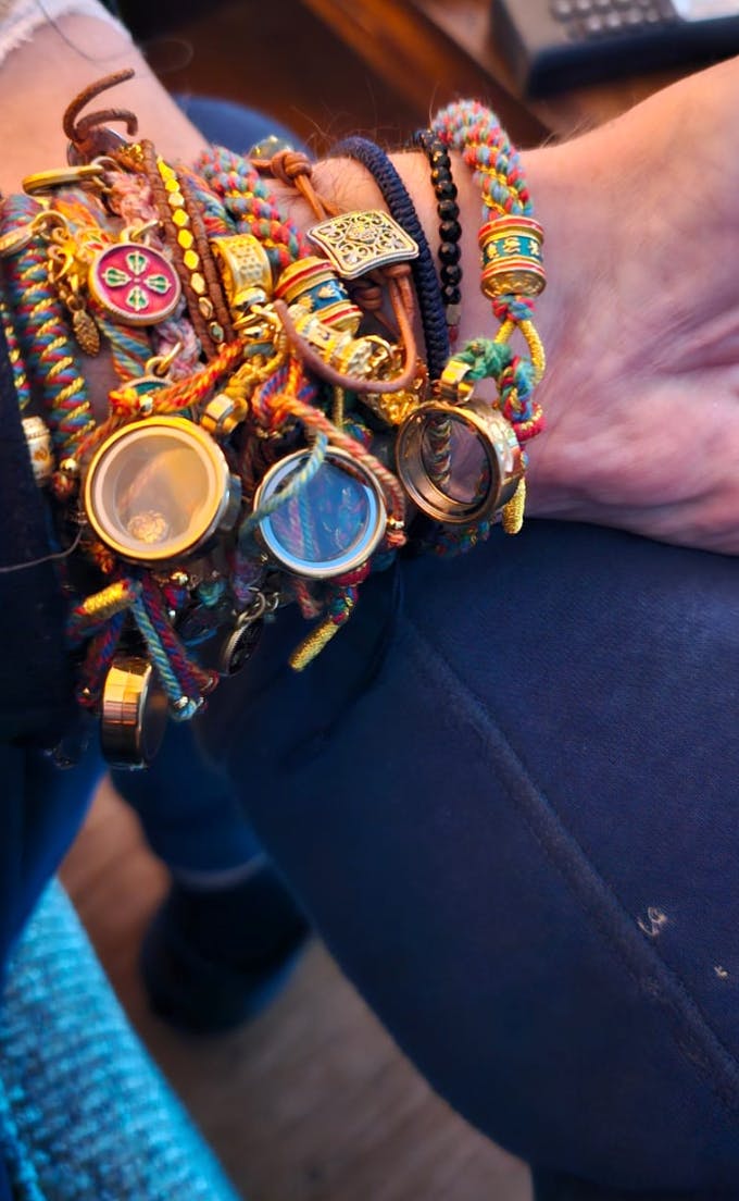 Woven in the traditional style and bearing the sacred Om Mani Padme Hum mantra, this bracelet reflects the spirit of Tibetan wisdom and intention.