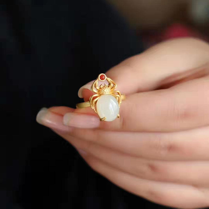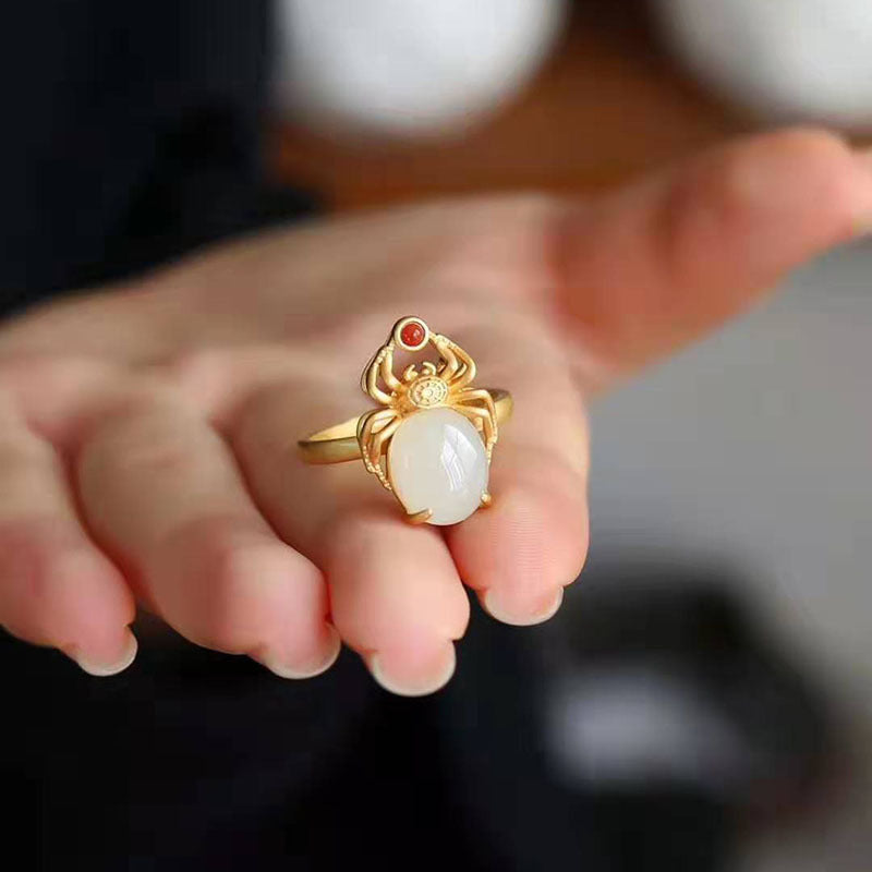 Hetian Jade Spider Balance Ring