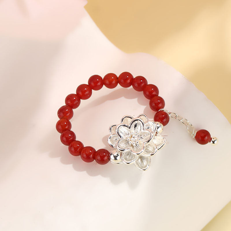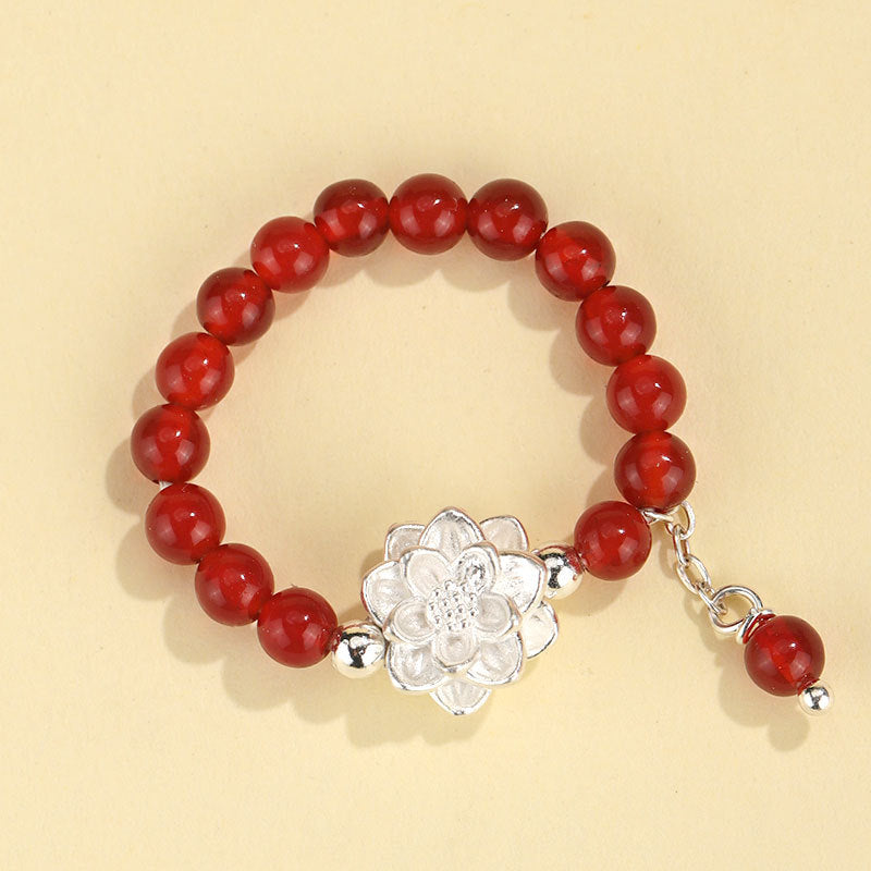 Each lotus motif embodies clarity, balance, and perseverance, while the red agate radiates vitality, courage, and positive energy. Together, they form a harmonious talisman that encourages emotional balance, confidence, and personal growth.