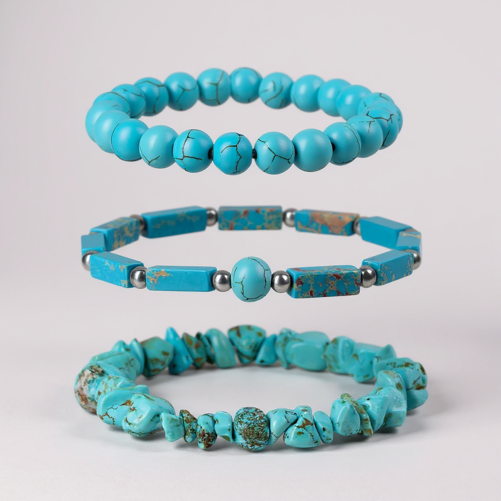 Turquoise🍀 symbolizes peace and protection. Known as a stone of luck and healing, each piece carries unique patterns and fresh, calming hues—perfect for daily wear or as a meaningful gift.