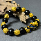 Golden Pixiu Obsidian Mantra Wealth Bracelet