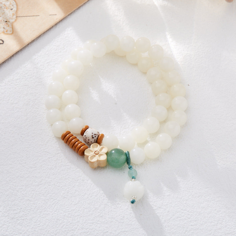 Hand-strung with natural Bodhi seeds and adorned with a delicate lotus pendant, this versatile piece wraps twice around your wrist, blending traditional symbolism with timeless style. Perfect for daily wear or spiritual practice, it’s more than an accessory—it’s a meaningful reminder to stay present and at peace.