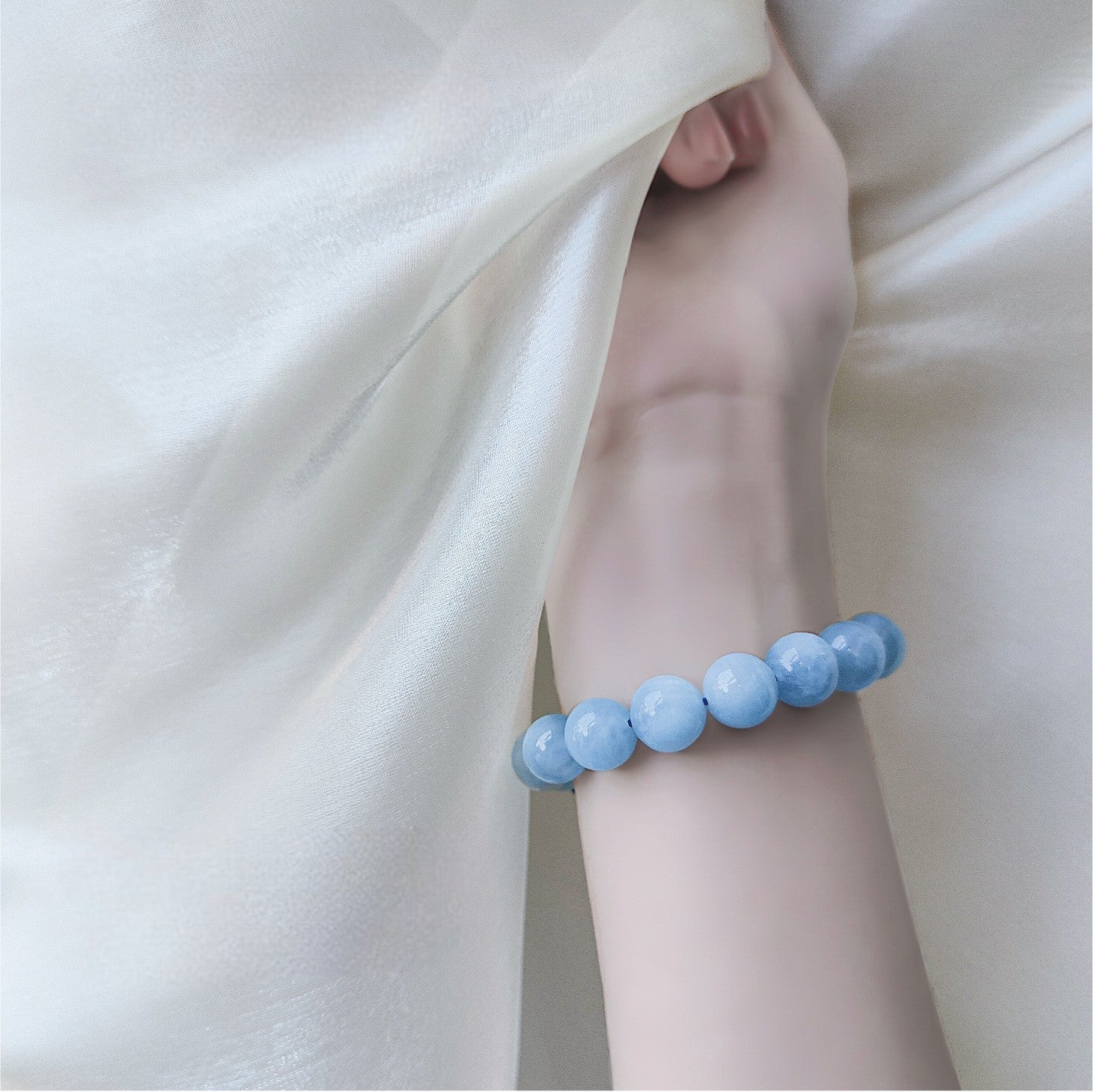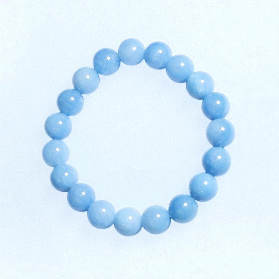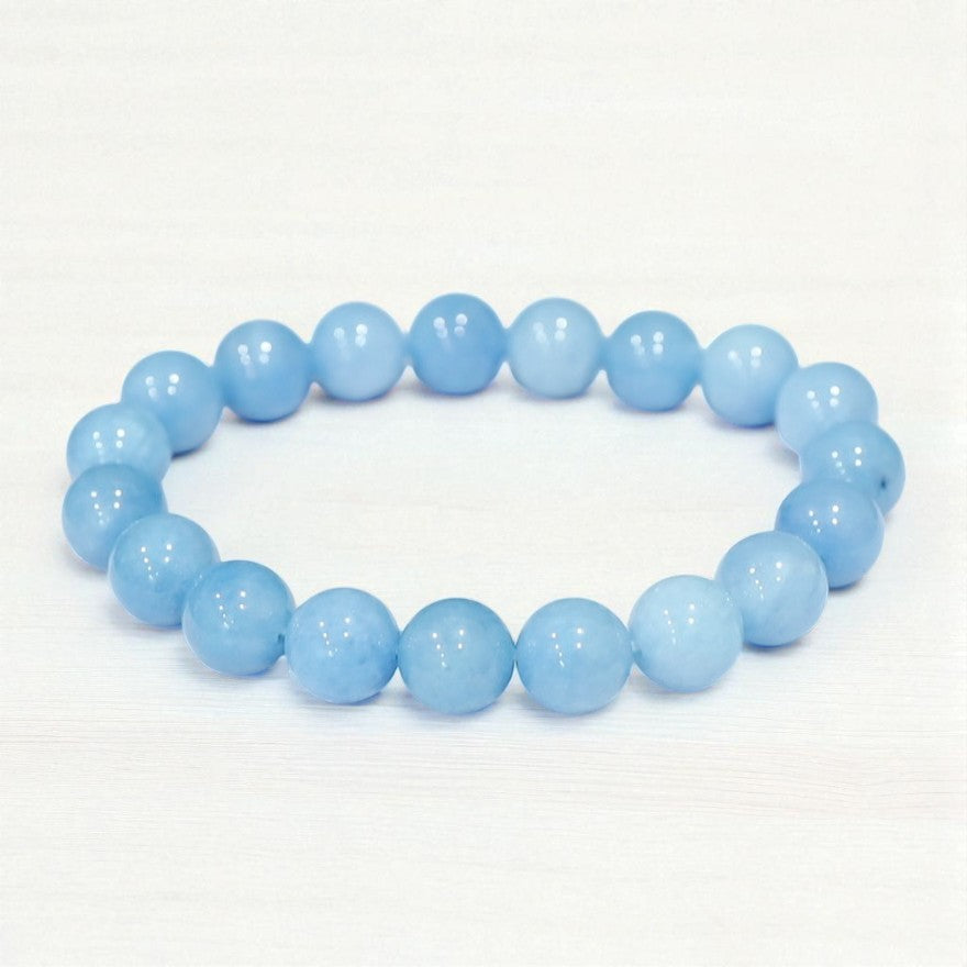 A serene expression of calm clarity and inner flow, this bracelet features the tranquil essence of natural blue quartz. Hand-strung with care, each bead invites a gentle stillness — making this bracelet a wearable companion for peace, communication, and self-awareness.