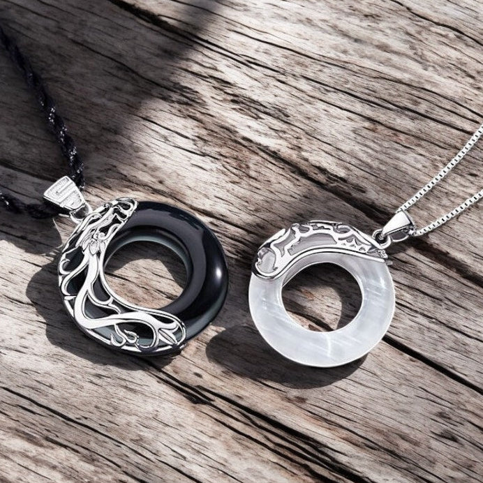 Obsidian Dragon & Opal Phoenix Couple Necklace