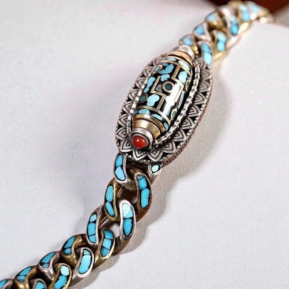 The sacred mantra Om Mani Padme Hum represents compassion, purification, and inner peace. Paired with the nine-eyed Dzi bead, it forms a powerful combination that supports emotional balance, intuition, and a deeper connection to your intentions.