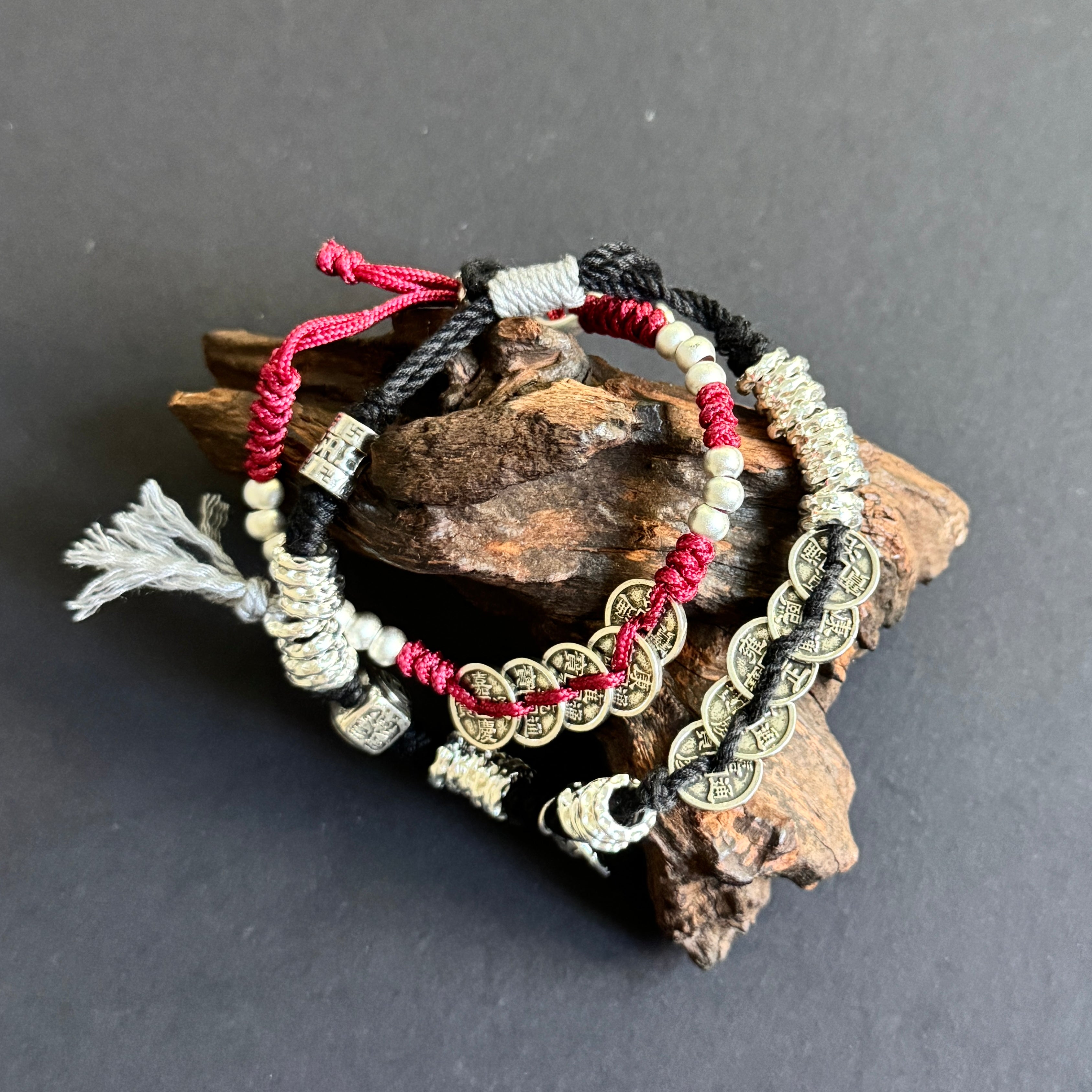 Attract love, prosperity, and harmony with the Five Emperors Coins Beads Red String Couple Luck Bracelet. This symbolic bracelet combines the auspicious energy of five ancient emperor coins with vibrant red string, forming a talisman that nurtures luck, protection, and relational harmony. The Five Emperors Coins represent wealth, authority, and positive energy, traditionally used to invite abundance and safeguard against negative influences. Paired with the red string, a timeless emblem of protection and good fortune, this bracelet is perfect for couples seeking balance, love, and shared prosperity. Handcrafted with care, it is both a meaningful accessory and a spiritual talisman for daily wear or gifting.