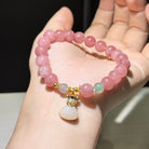 Invite more peace, balance, and gentle abundance into your life with the Strawberry Quartz Crystal Jade Bracelet.