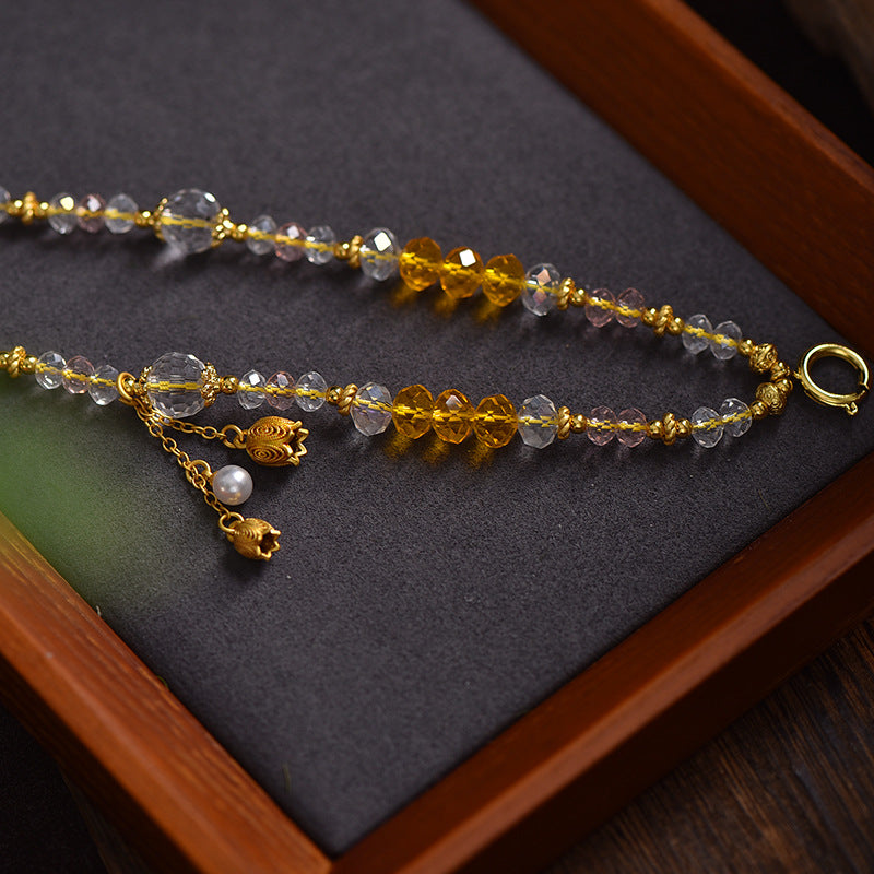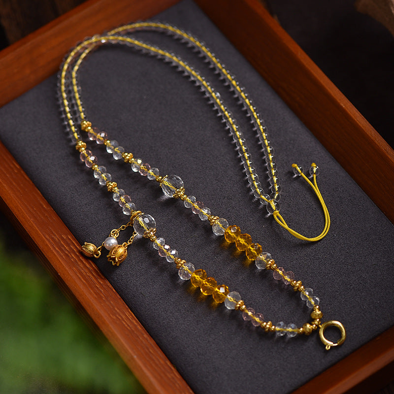 Tibetan White Crystal Citrine Balance Necklace Highlights