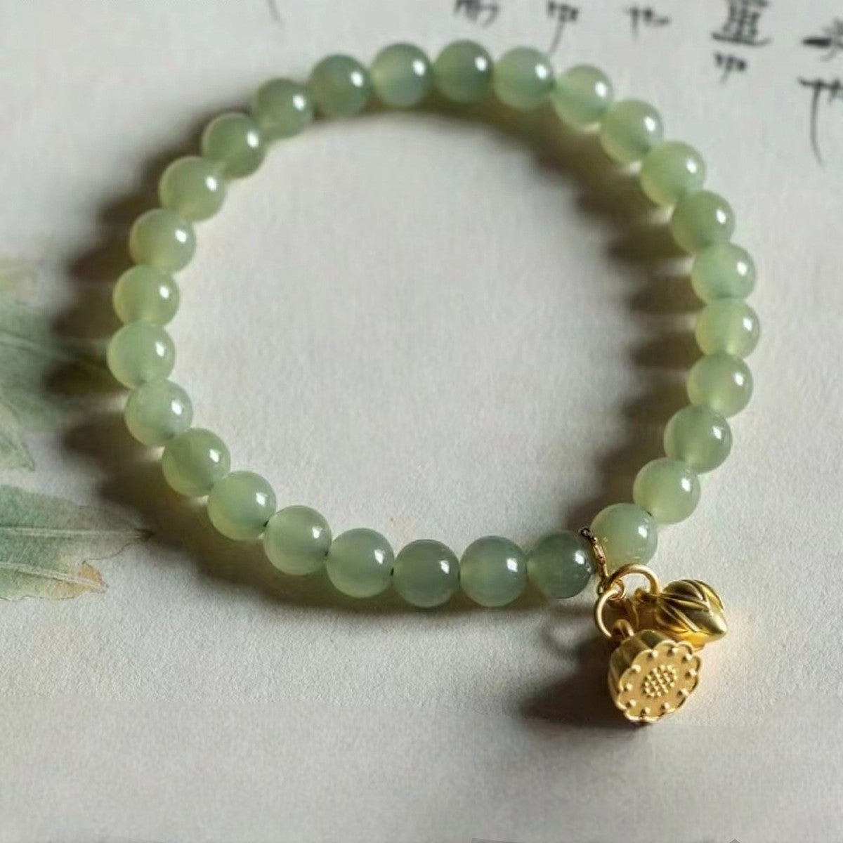 • Elegant Craftsmanship: Smooth jade beads paired with a delicate lotus charm.