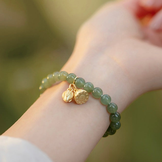 Find serenity, growth, and renewal with the Green Jade Lotus Pendant Balance Bracelet — a graceful blend of natural jade and the sacred lotus, symbolizing purity, harmony, and spiritual awakening.