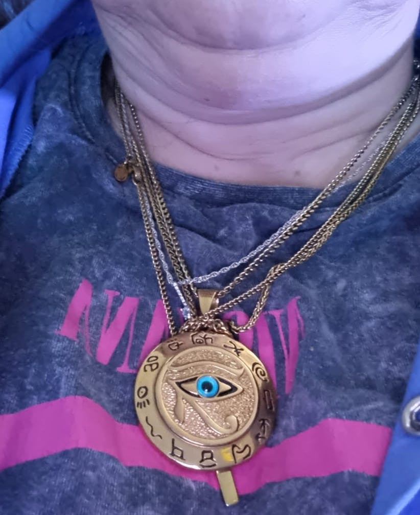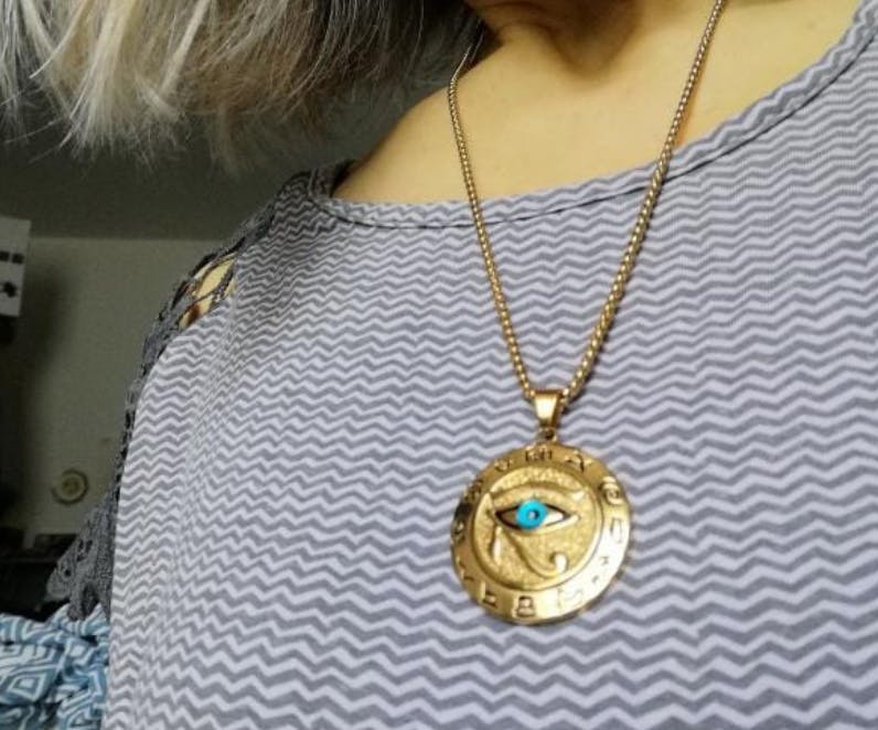 Wear the Evil's Eye Om Mani Padme Hum Pendant Protection Necklace as a reminder to stay protected, mindful, and spiritually empowered.
