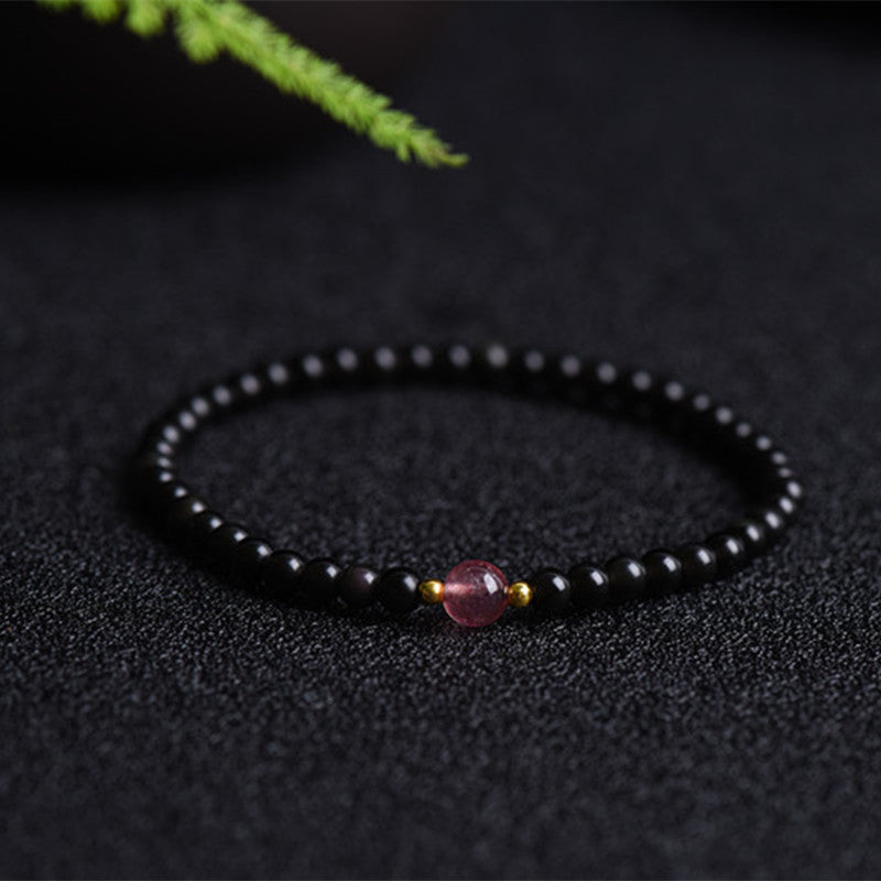 Obsidian Strawberry Quartz Protection Bracelet Highlights