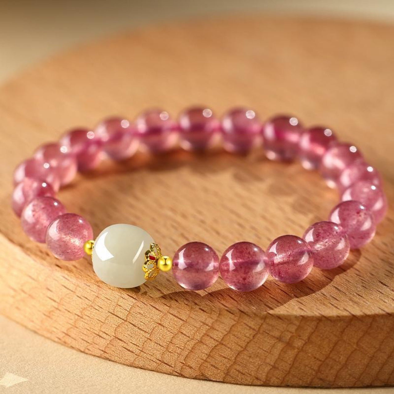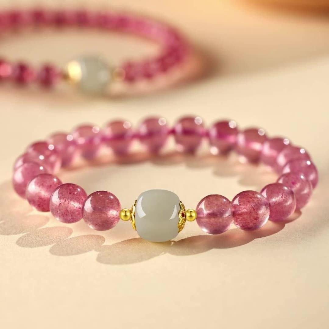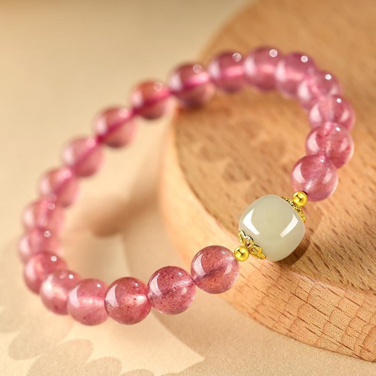 Don’t leave love to chance — invite it into your life with the Strawberry Quartz Jade Love Bracelet.
