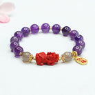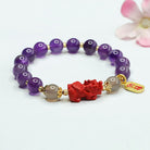 Chakra & Aura Amethyst Cinnabar Pixiu Charm Pendant Wealth Bracelet