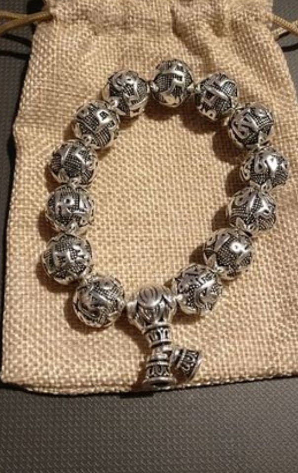 Each element carries profound symbolism: the Six-syllable Mantra blesses the wearer with compassion and wisdom, the lotus represents rising above challenges to achieve enlightenment, while the Buddhist beads promote focus, meditation, and harmony. Together, they form a sacred accessory that guides you toward balance, peace, and spiritual clarity in daily life.