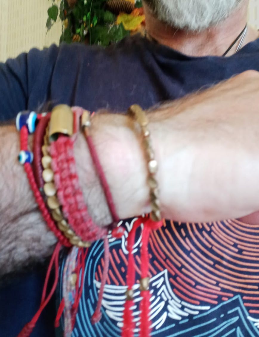 Each bracelet is made with care, blending traditional elements with modern simplicity. Whether you wear it as a statement of personal intention or as a calming accessory, its natural look and feel bring subtle presence to your daily life.